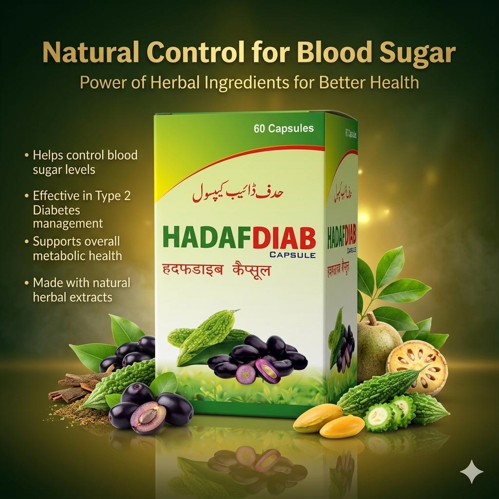 HadafDiab Capsules are a carefully formulated Unani/Ayurvedic blend designed to help manage blood sugar levels naturally in individuals with Type 2 Diabetes. Enriched with time-tested herbal ingredients, this formulation supports healthy glucose metabolism, improves insulin sensitivity, and promotes overall well-being.