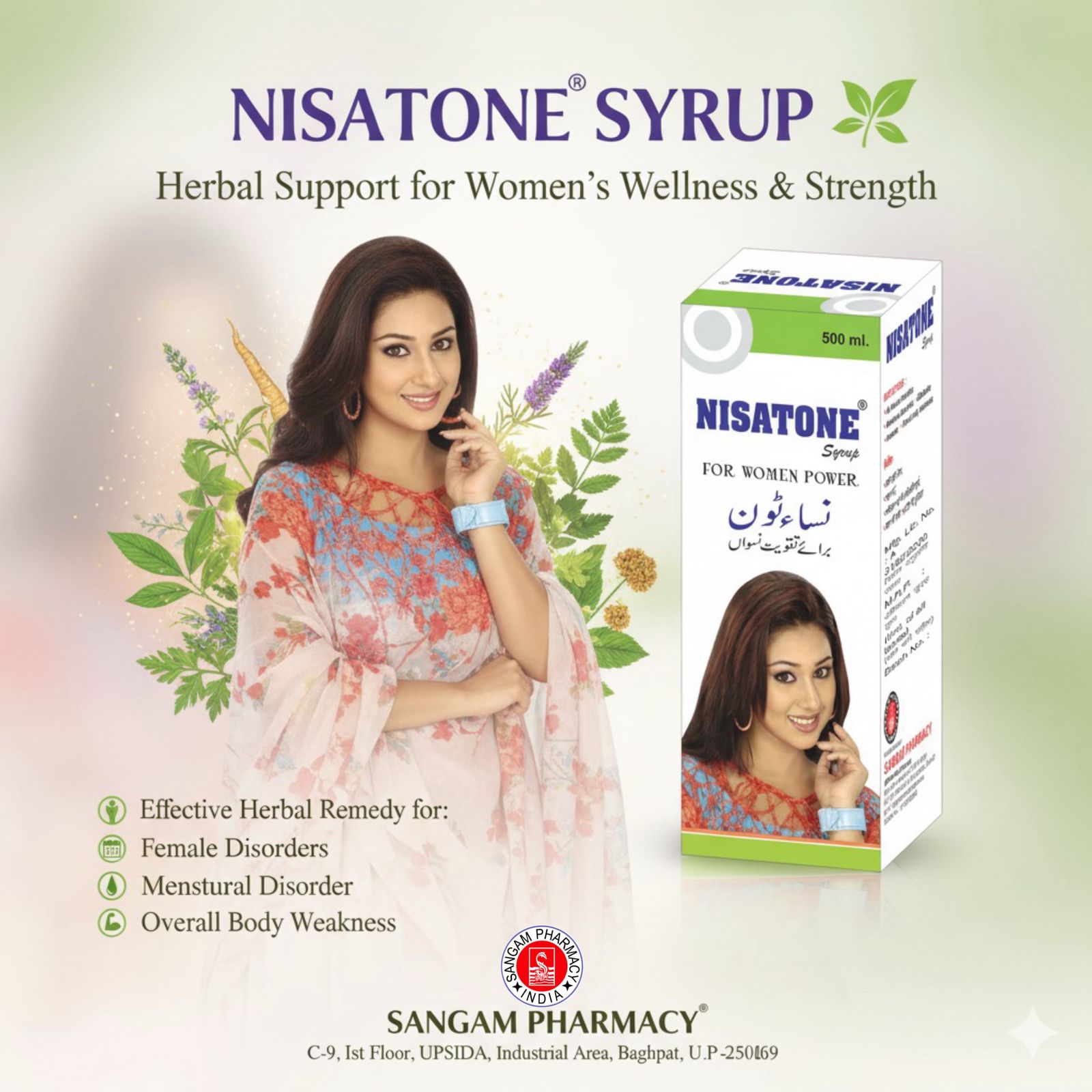 Nisatone Syrup is very effective remedy made by 17 specific herbs which are Satawar, Asgandh, Revandchini, Anar, Mulethi, Mazoo, Mocharas, Kalonji, Dashmool, Makoe, Kasni, Moosli, Salabpanja, Palak, Amla, Lime water, Honey. It is very effective in female disorders, menstrual disorder, anemia and whole body weakness